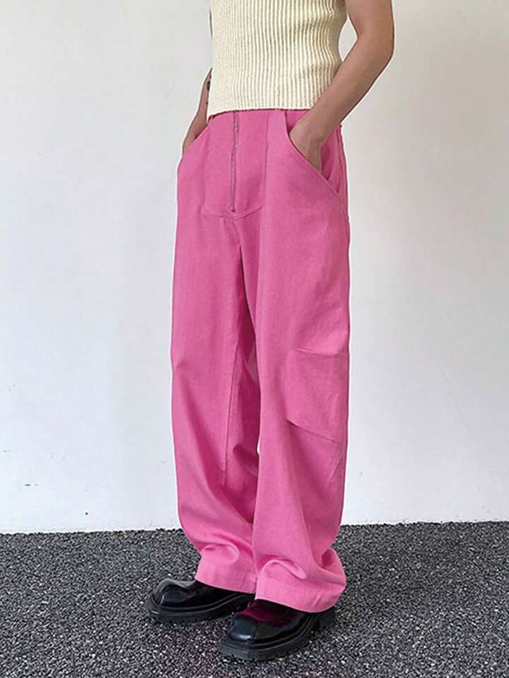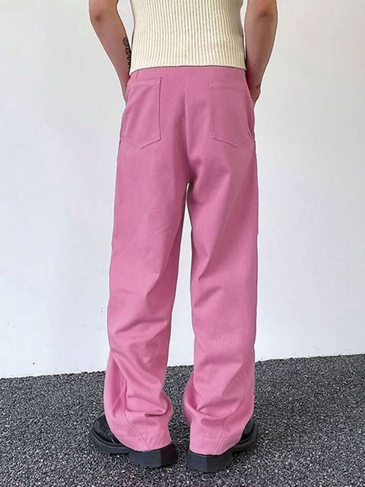 Guys Solid Slant Pocket Straight Leg Pants Without Belt