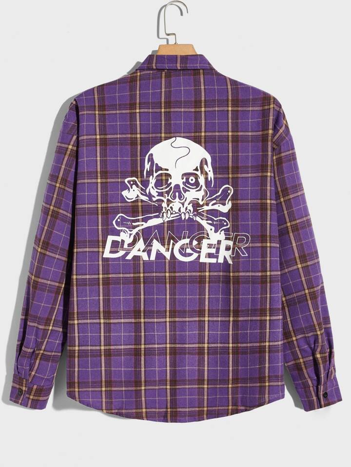 Guys Tartan Skull Print Shirt