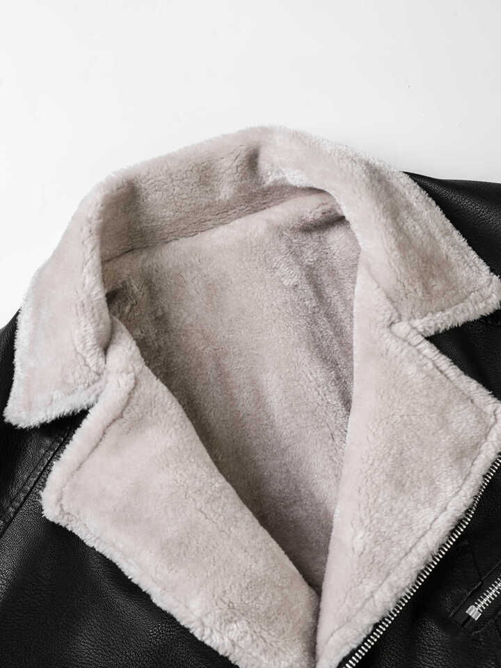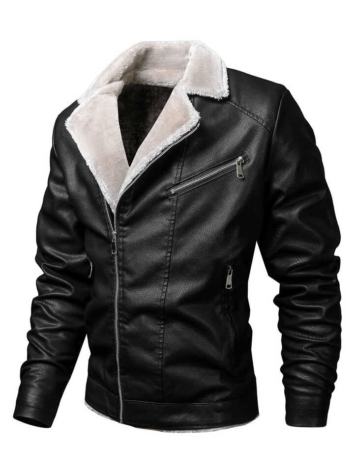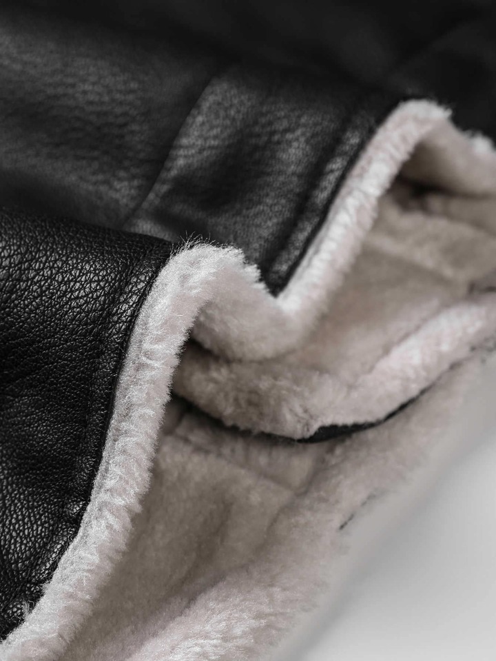 Guys Teddy Lined PU Leather Biker Jacket