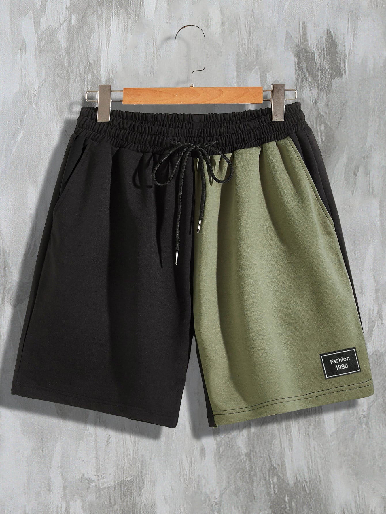 Guys Two Tone Letter Patched Drawstring Waist Shorts