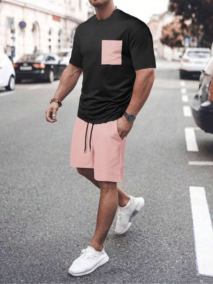 Guys Two Tone Patched Pocket Tee & Drawstring Waist Shorts