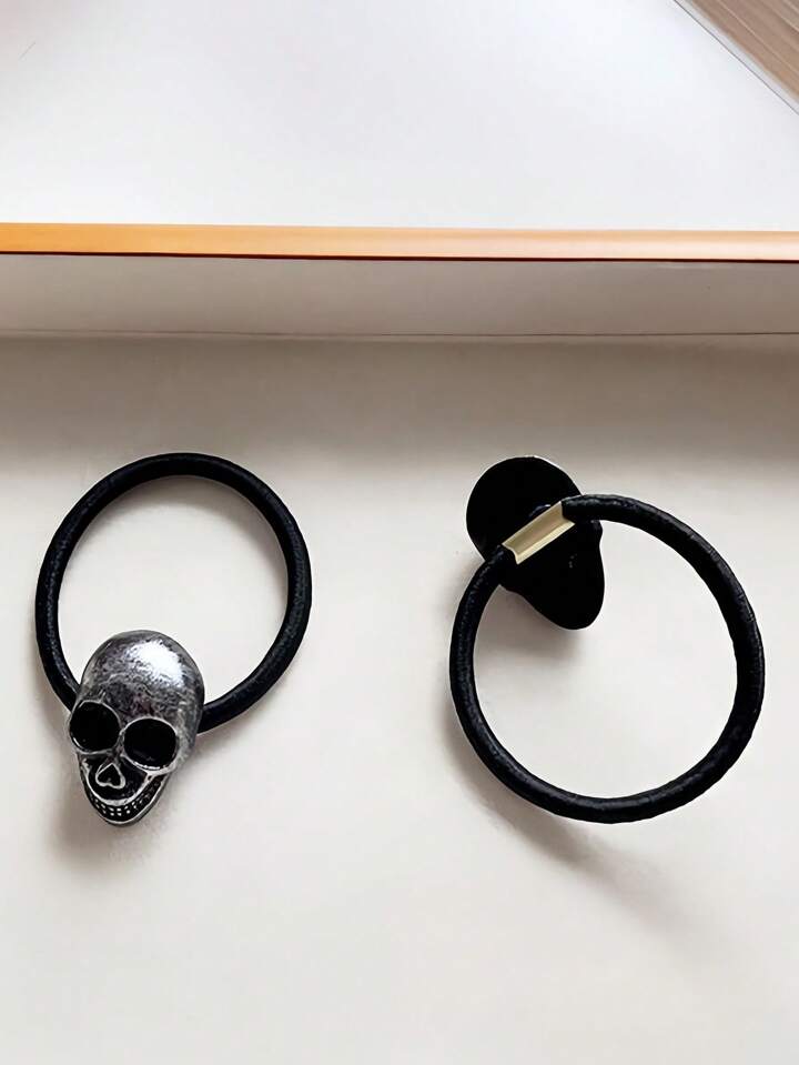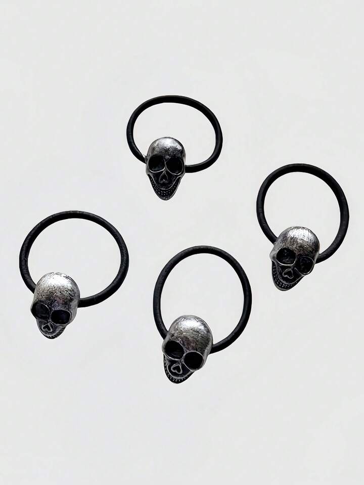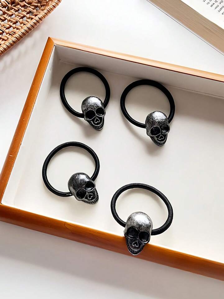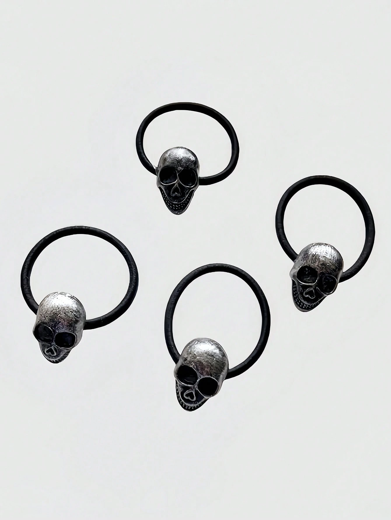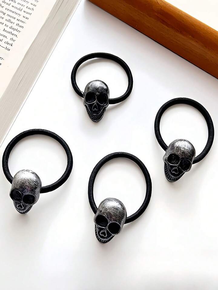 Halloween Dark Style Girl Skull Hair Scrunchies Ponytail Elastic Bands, Punk Goth Retro Hair Ties