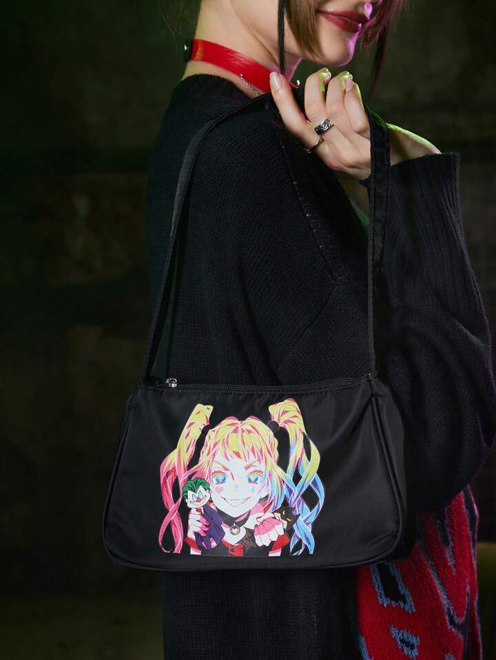 Harley Quinn | ROMWE Anime Character Printed Underarm Black Shoulder Bag