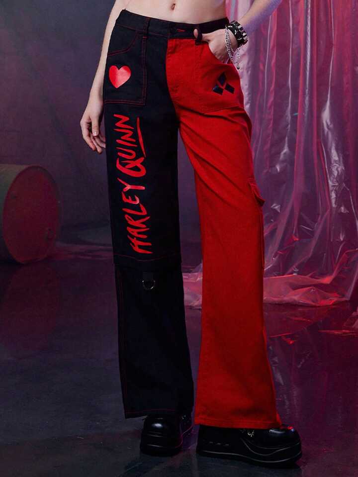 Harley Quinn | ROMWE Letter Graphic Colorblock Flap Pocket Jeans
