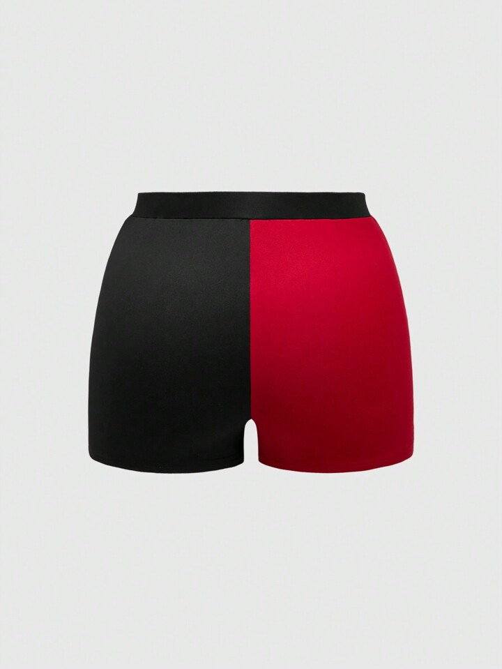 Harley Quinn | ROMWE Plus Size Women Casual Letter & Geometric Pattern Contrast Color Elastic Waist Shorts, Summer