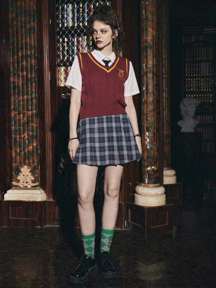 Harry Potter | ROMWE 1pair Women Plaid & Letter Graphic Crew Socks