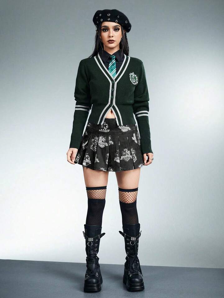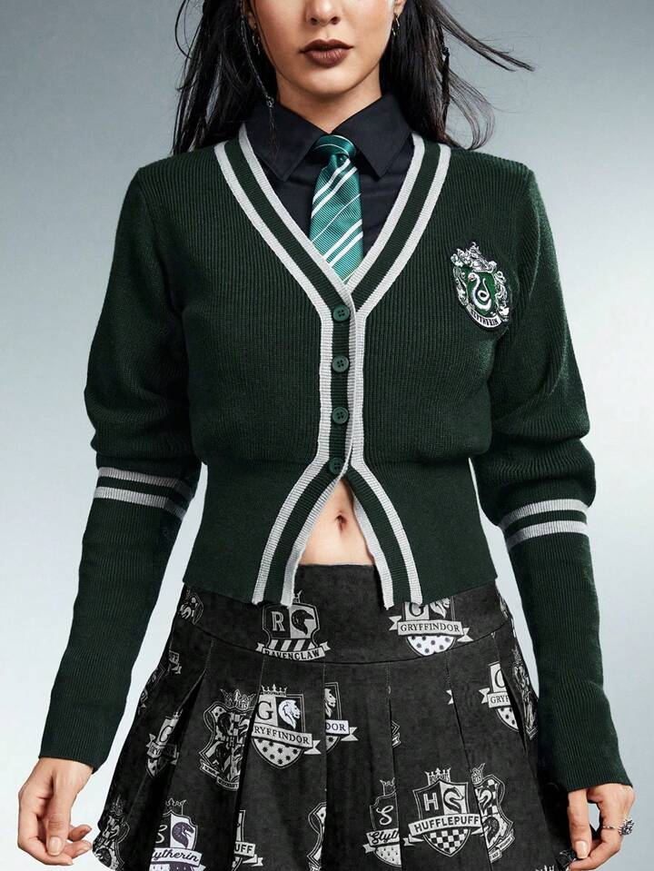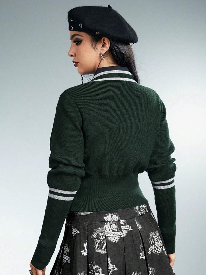 Harry Potter | ROMWE Slytherin House Contrast Piping Cardigan For Women