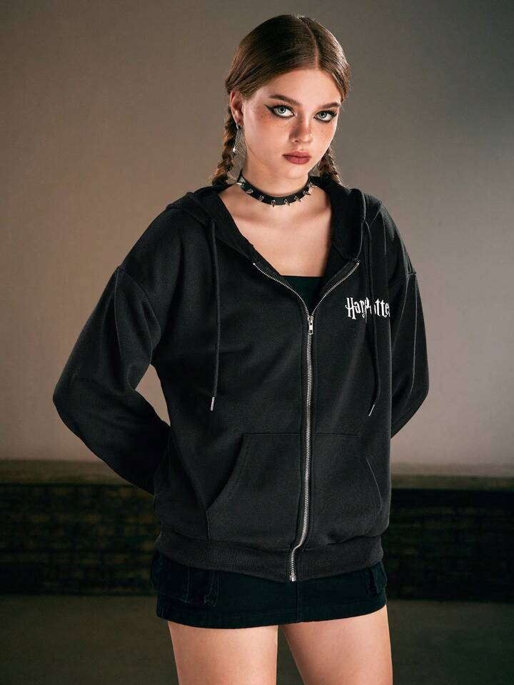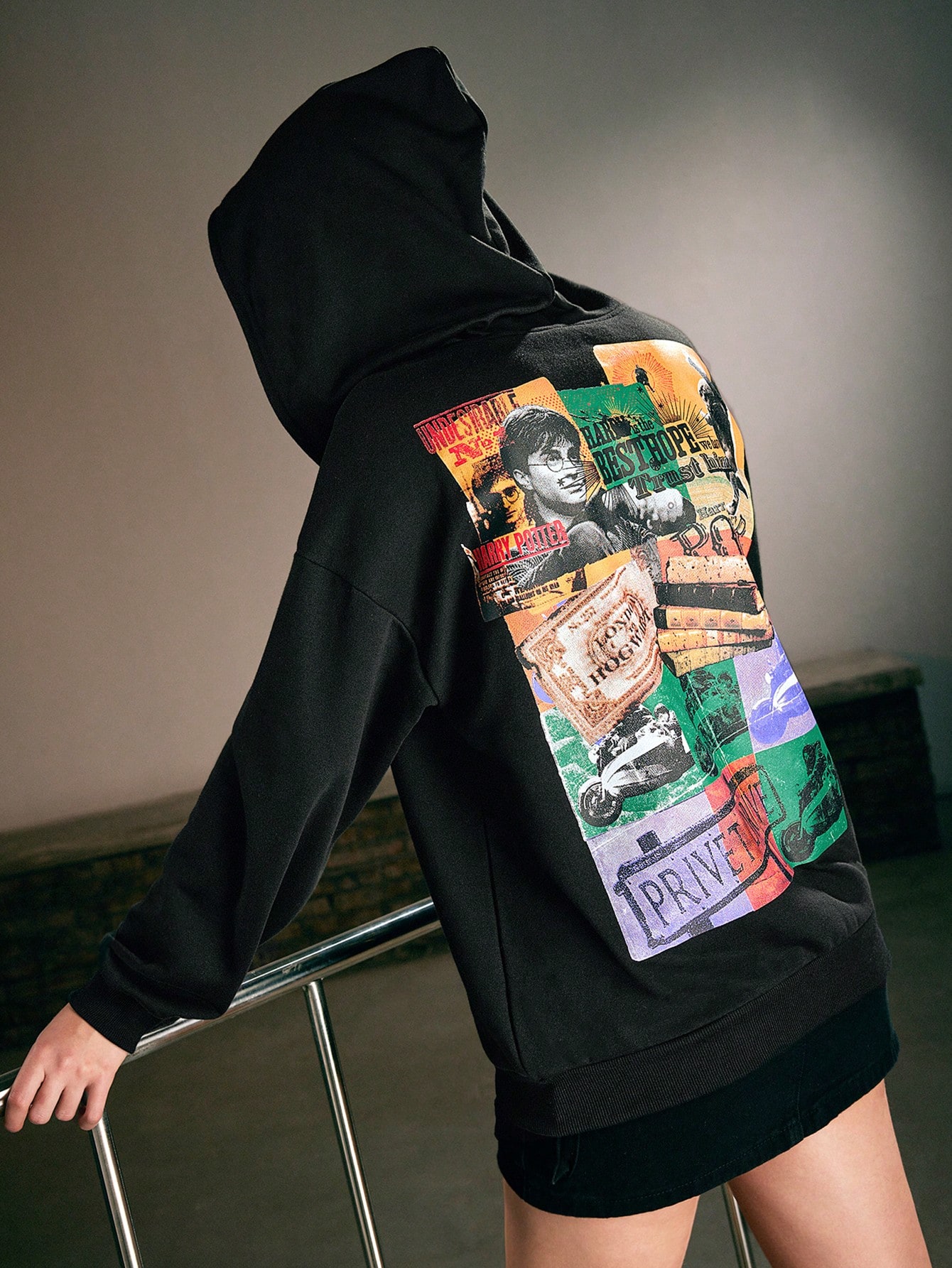 Harry Potter | ROMWE Women's Patchwork Printed Hoodie
