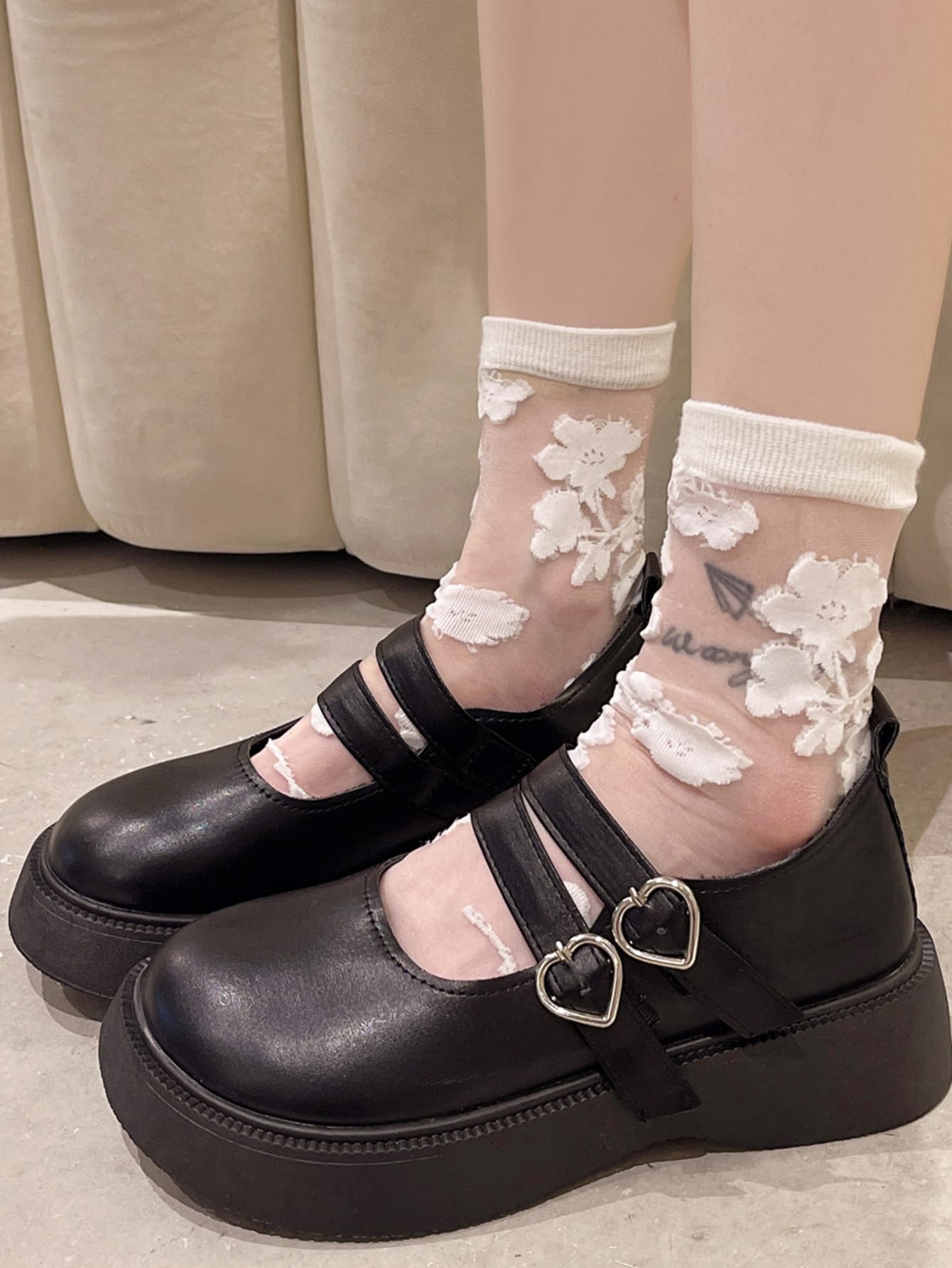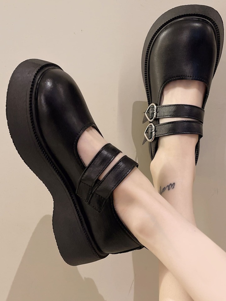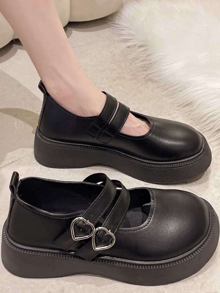 Heart Buckle Detail Flatform Mary Jane Shoes