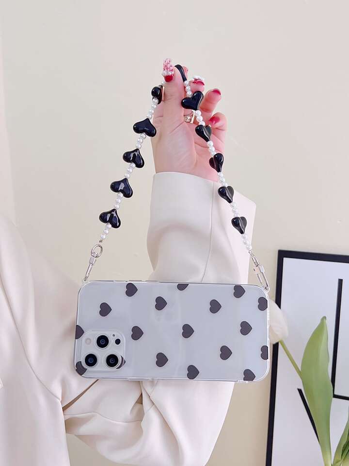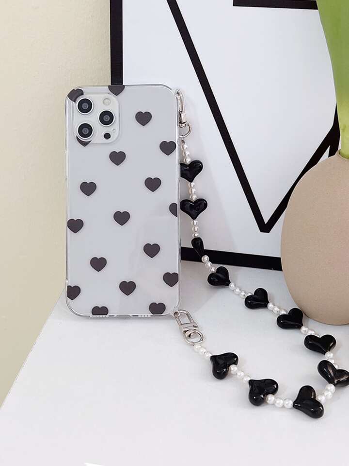 Heart Pattern Phone Case With Hand Strap