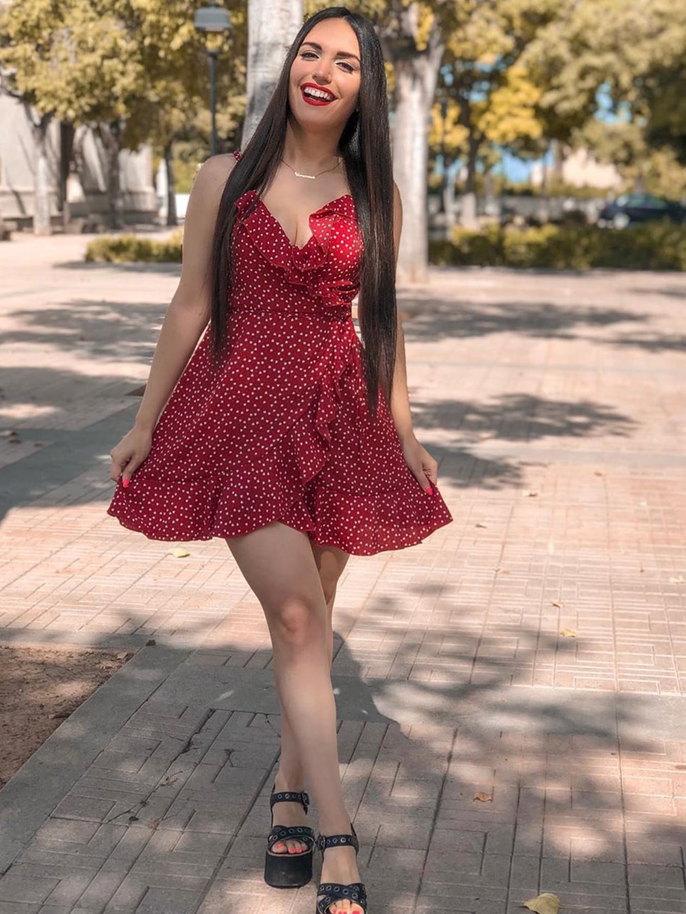 Heart Print Ruffled Mini Cami Dress