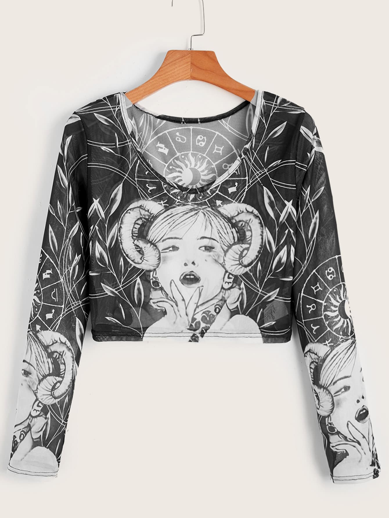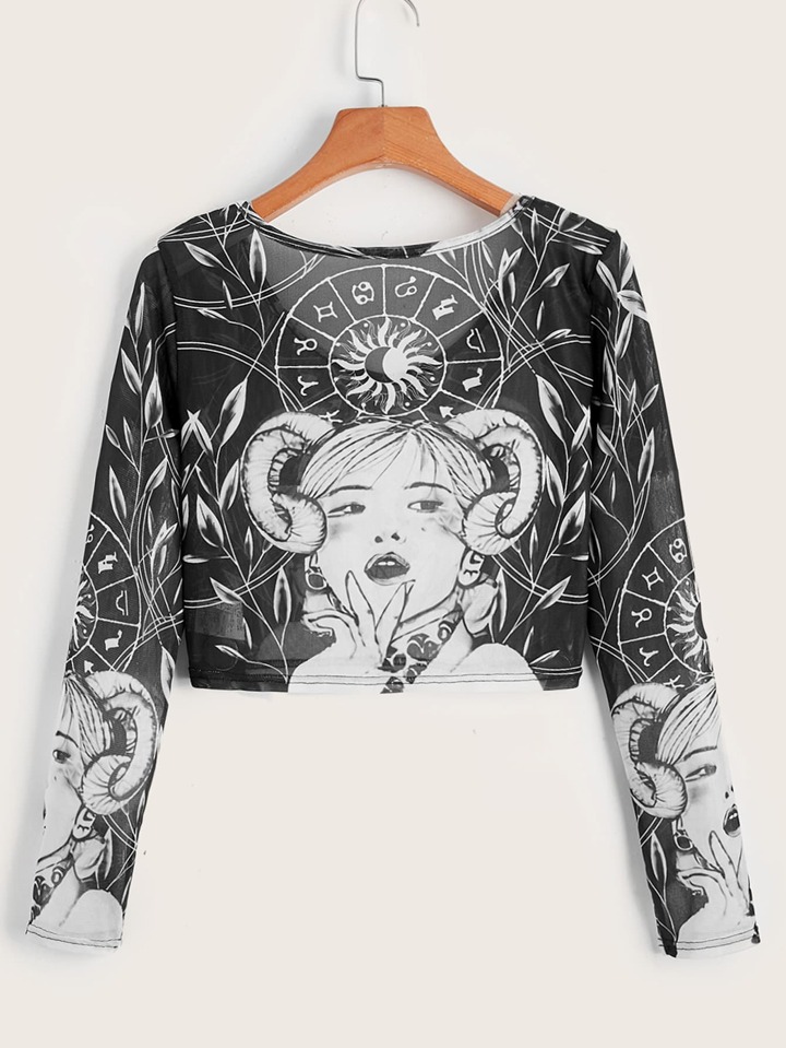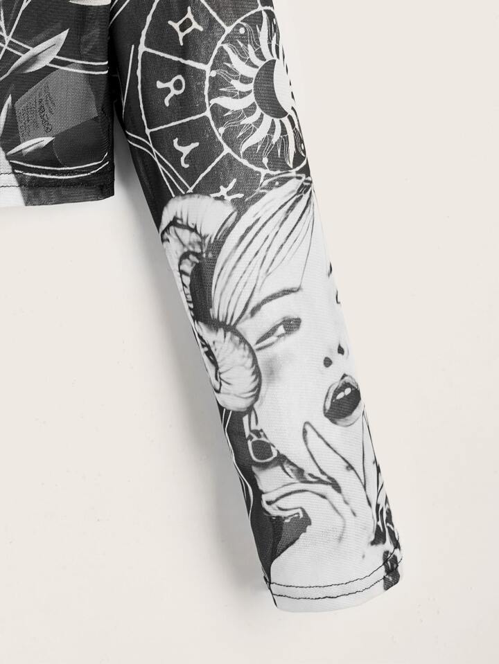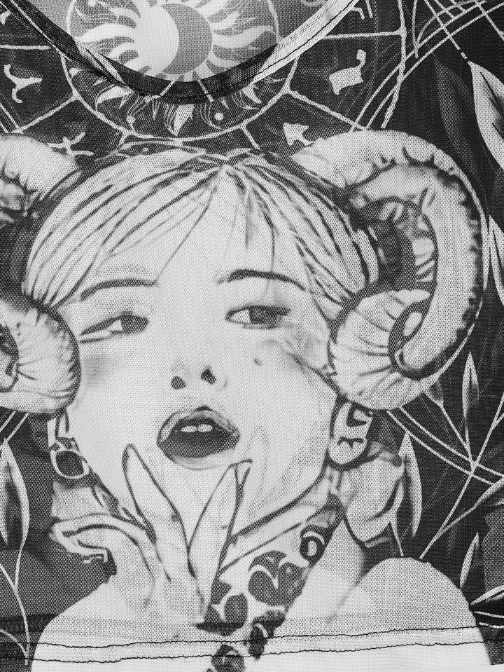 Herminedecrayon Starsalign Figure Print Mesh Top