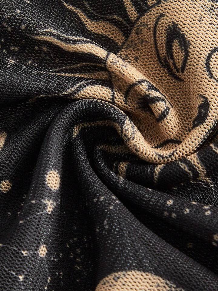 Heymoonly Sun & Moon Print Tie Shoulder Cami Top