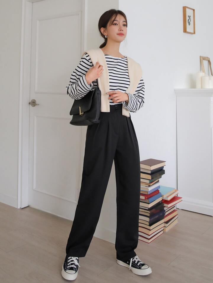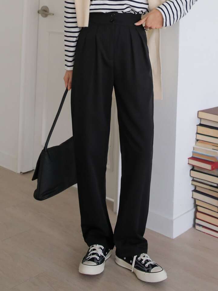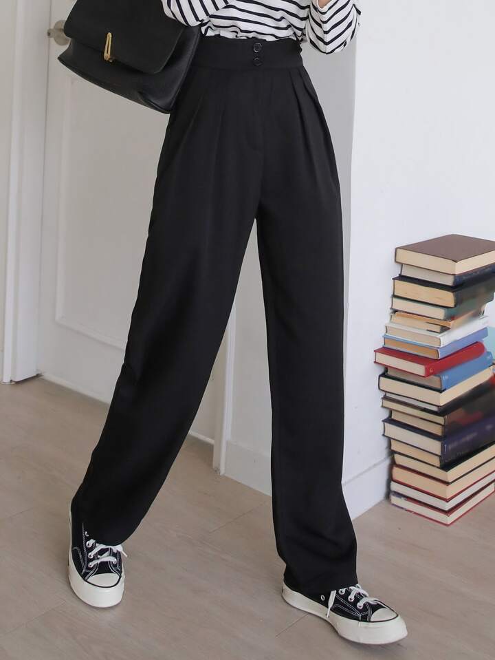 High Waist Plicated Detail Straight Leg Pants,Women Dress Pants Buisness Attire