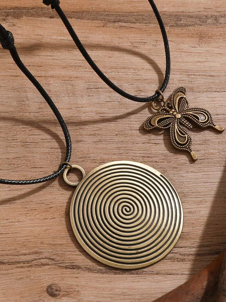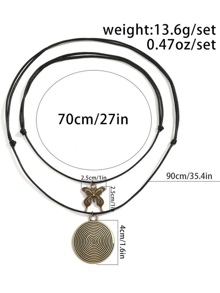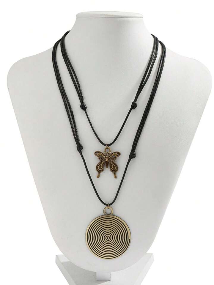 Hippie 1 Set Vintage Women Geometric Circle Butterfly Pendant Fairy Necklace