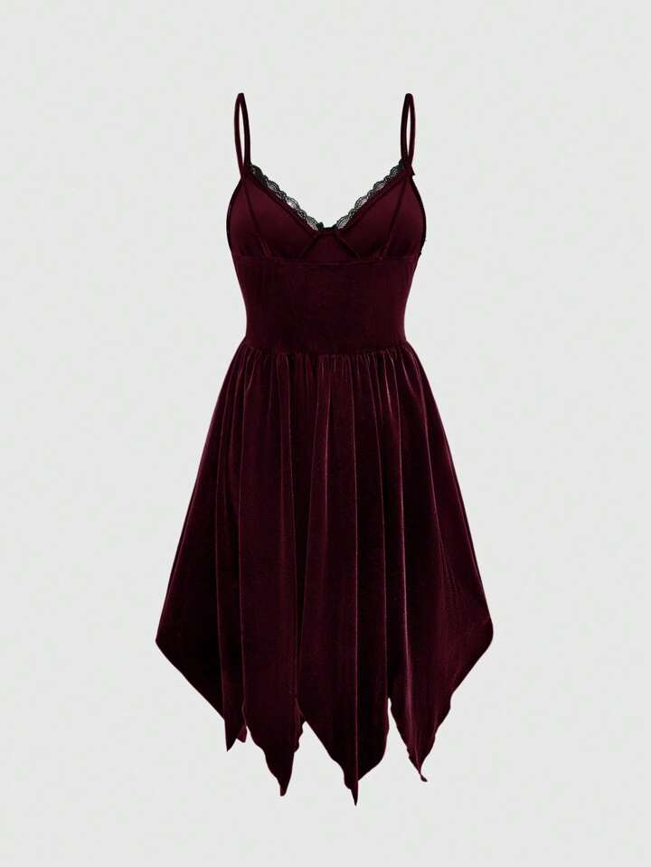 Hippie Black Gothic Star & Moon Embroidery Velvet Cami Dress With Asymmetrical Hem