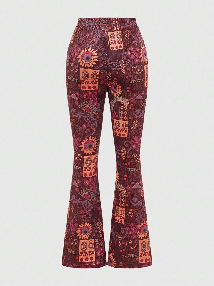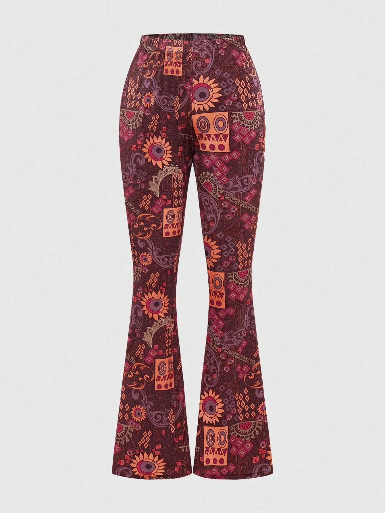 Hippie Boho Style Vintage Full-Print Flared Pants