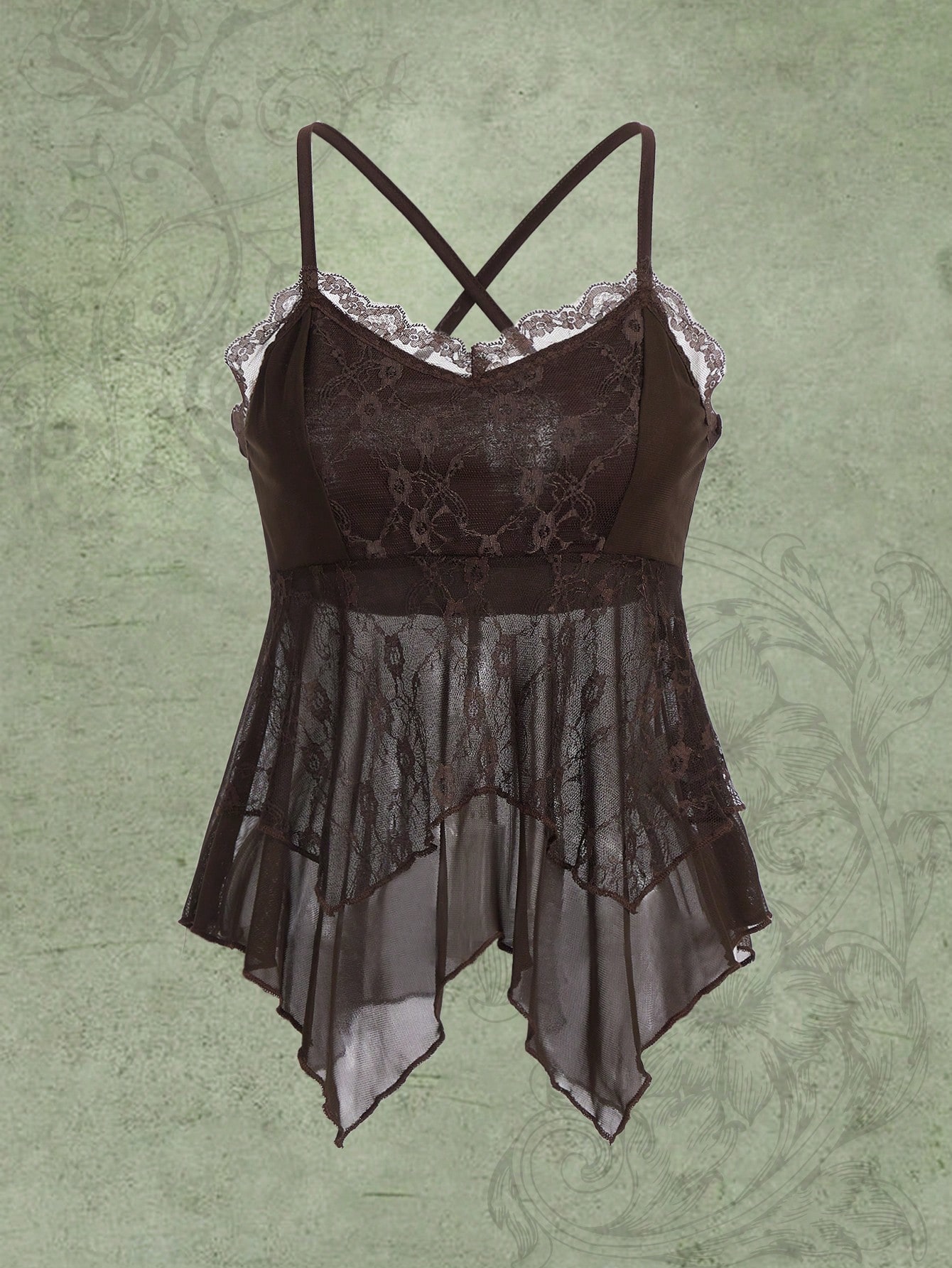 Hippie Contrast Lace Asymmetrical Hem Cami Top