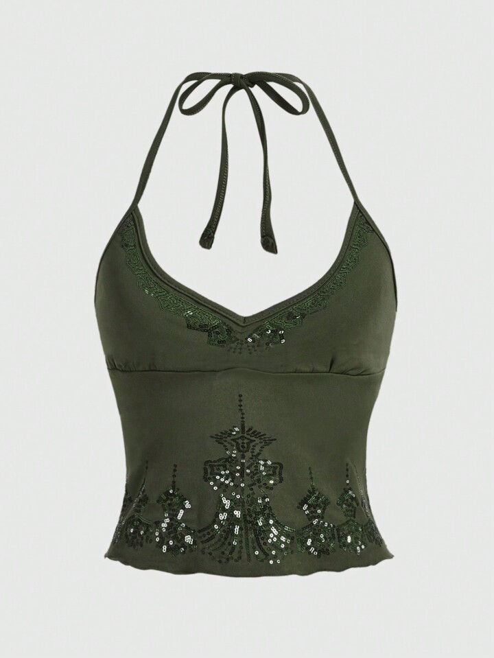Hippie Contrast Sequins Halter Top