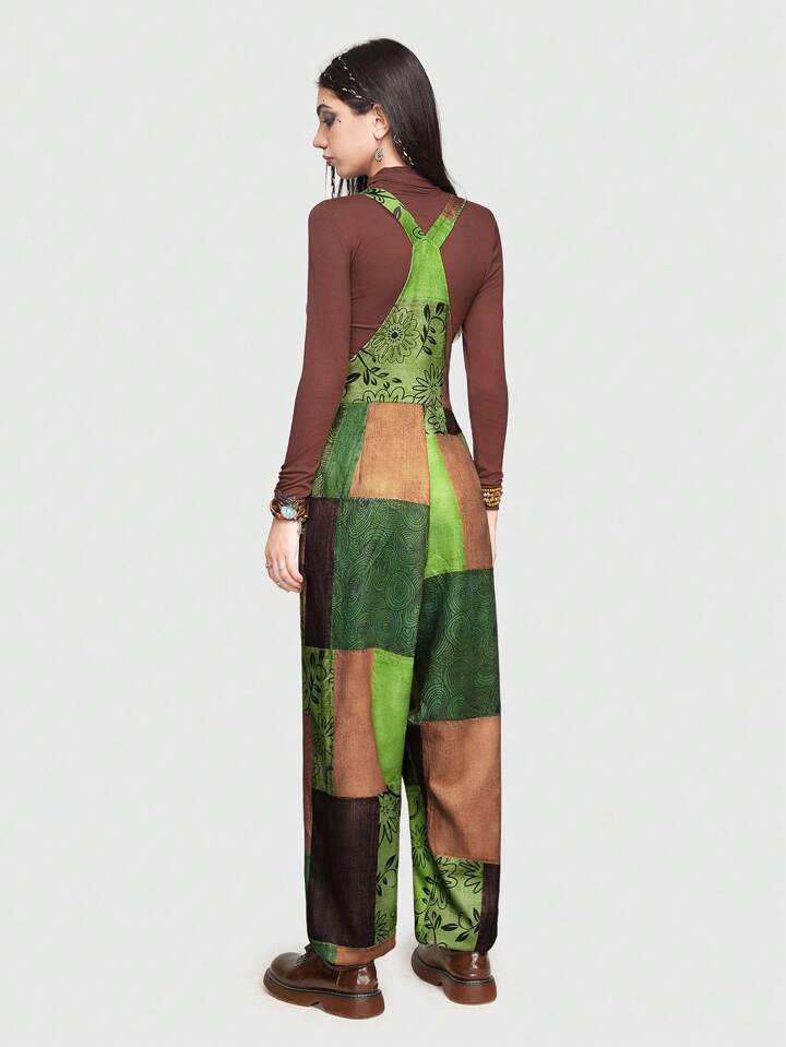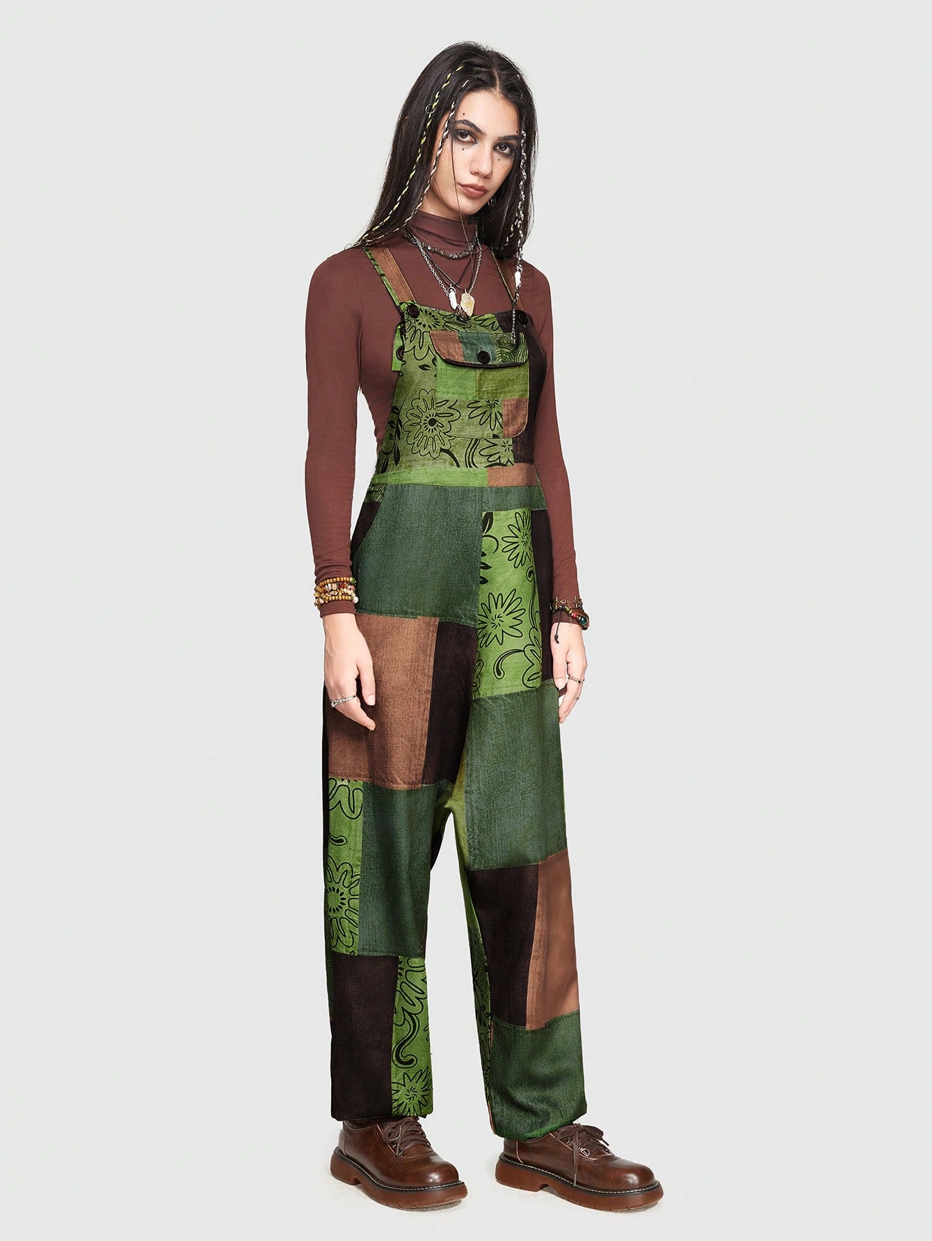 Hippie Floral Print Patchwork Overall Jumpsuit Without Tee