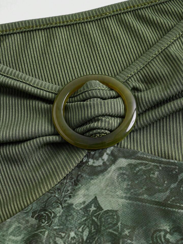 Hippie Floral Print Ring Linked Asymmetrical Hem Tee