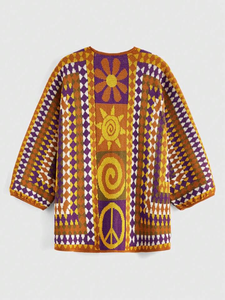 Hippie Geo Pattern Drop Shoulder Cardigan