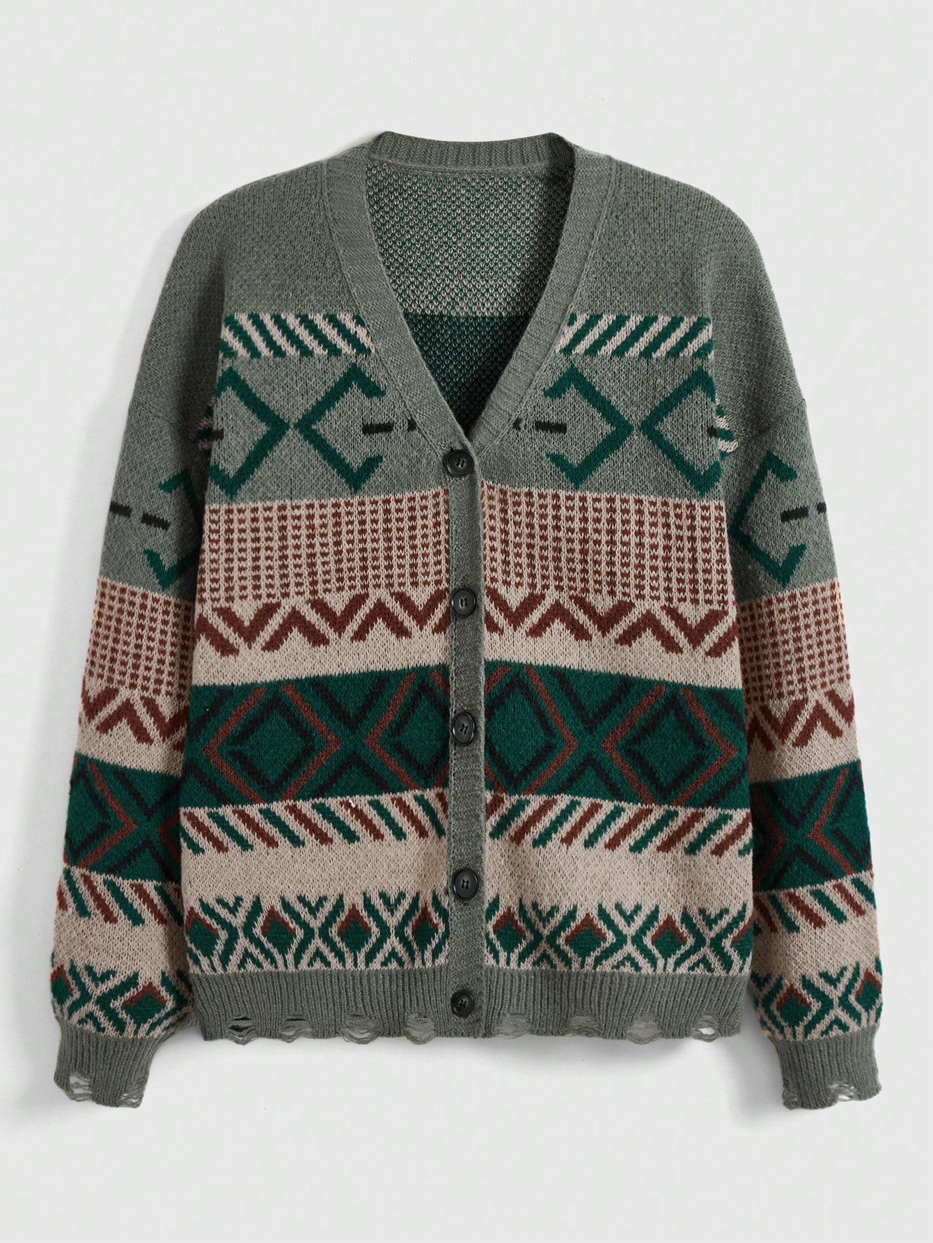 Hippie Geo Pattern Drop Shoulder Cardigan