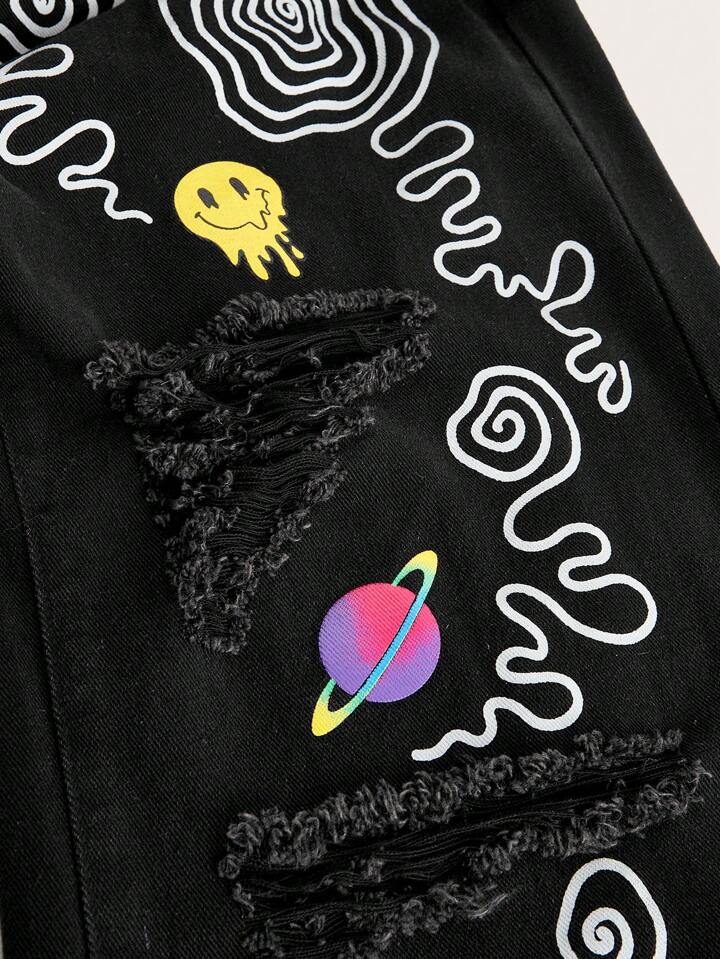 Hippie Ladies" Swirl Alien, Flying Saucer, Mushroom, Ripped Jeans