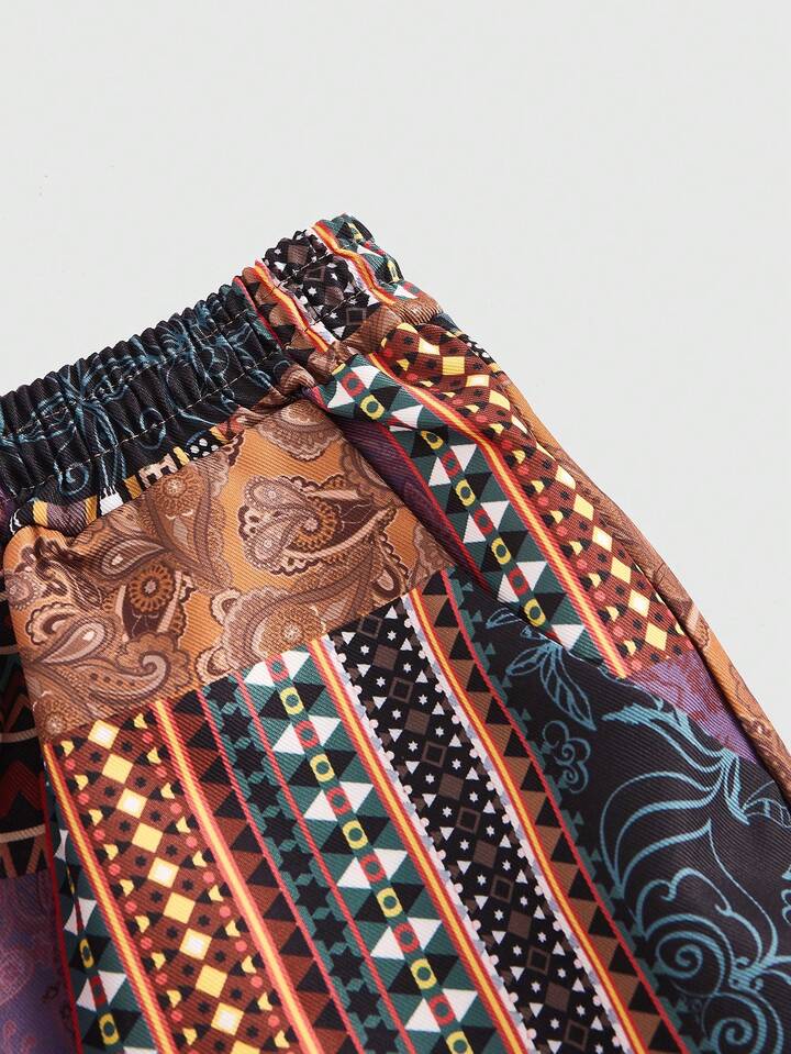 Hippie Plus Patchwork Print Drawstring Waist Wide Leg Pants