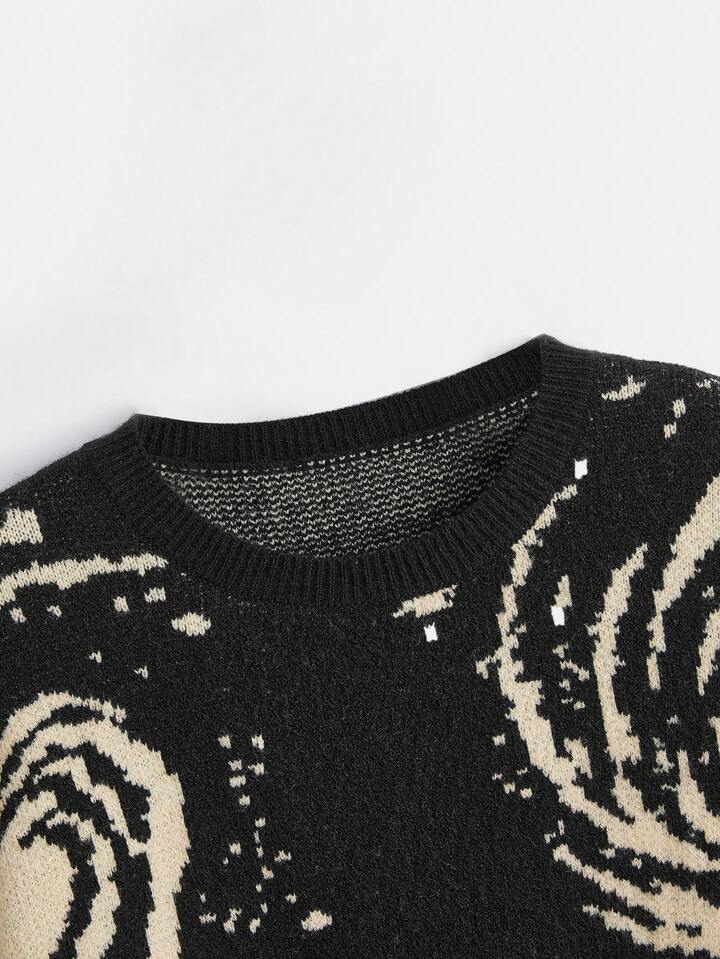 Hippie Plus Size Sweater With Patterned Round Neckline, For Winter