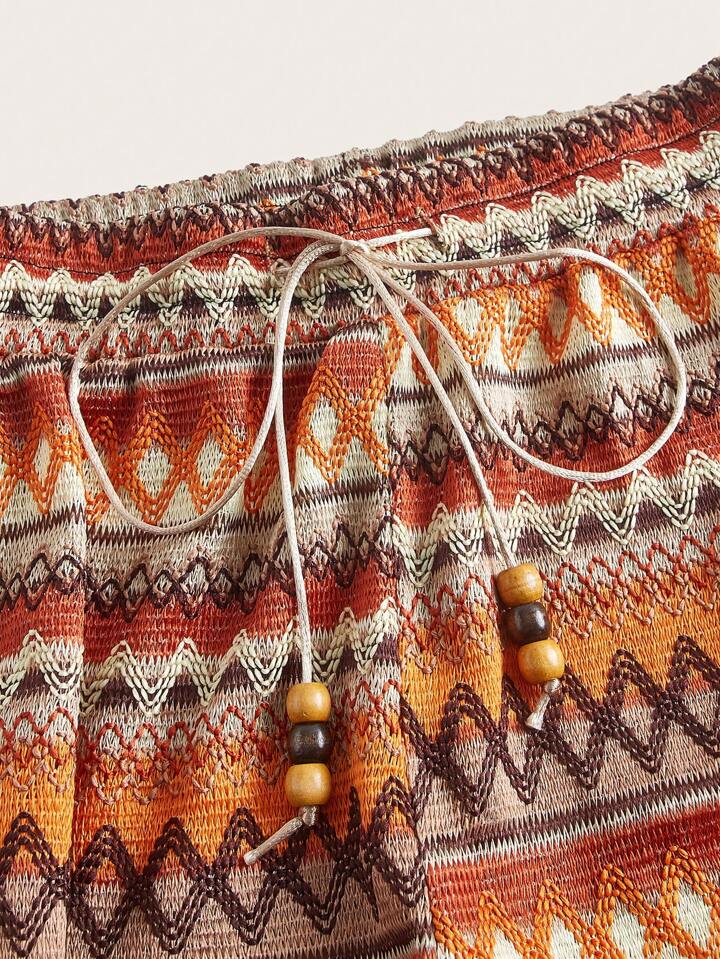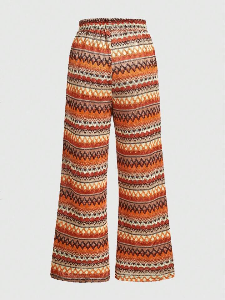 Hippie Style Drawstring Waist Geometric Pattern Striped Jacquard Knitted Wide Leg Pants