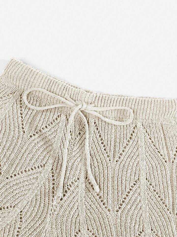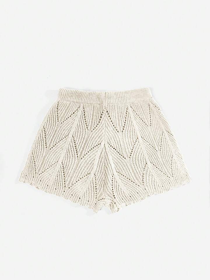 Hippie Summer Drawstring Waist Pointelle Crochet Knit Shorts, School