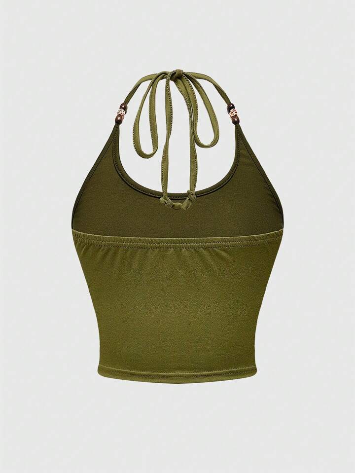 Hippie Vintage Beaded Necklace Halter Vest And Sun Collage Print Loose Wide Leg Pants Women 2pcs/Set