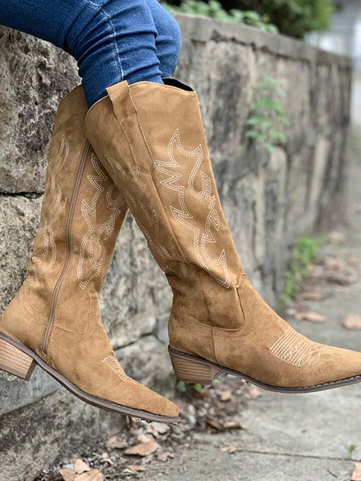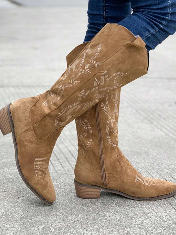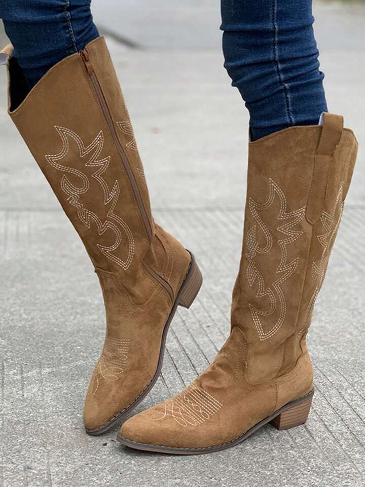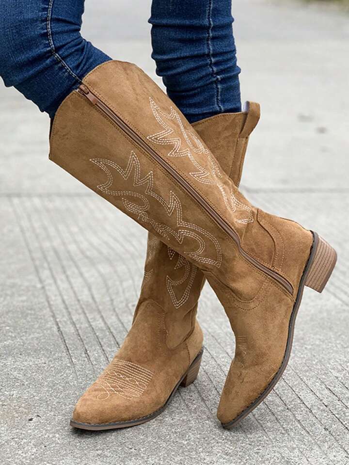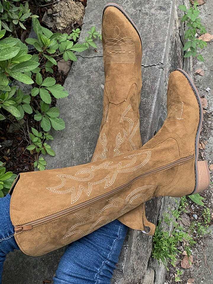 Hippie Women Minimalist Side Zipper Chunky Heeled Point Toe Western Boots, Cool Outdoor Fashion Boots