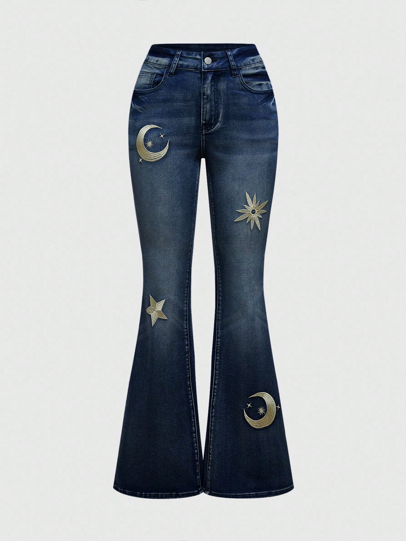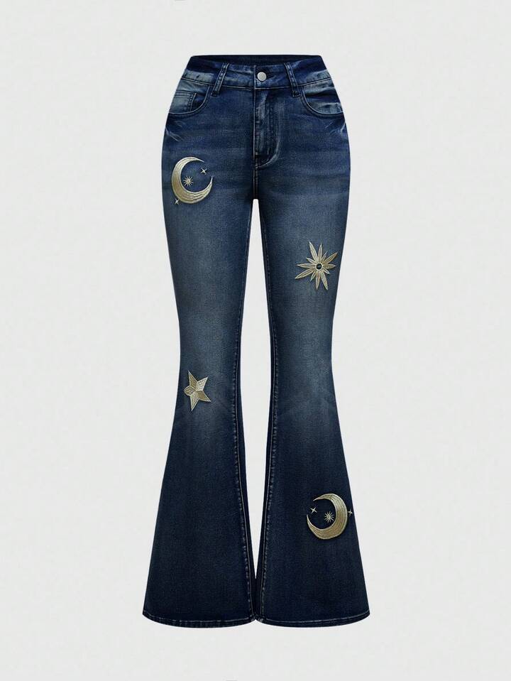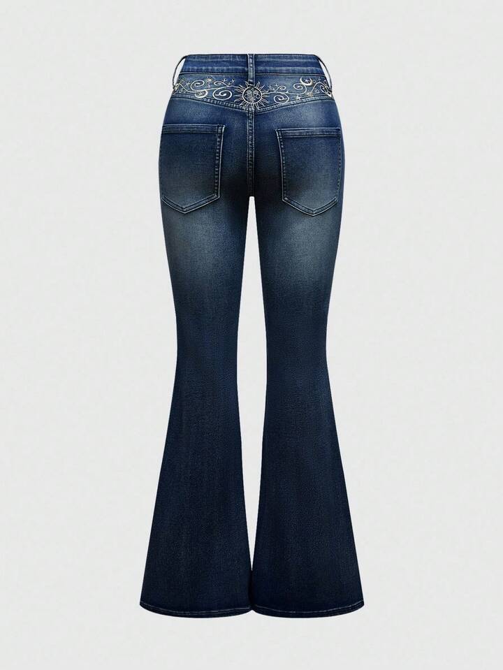 Hippie Women's Fashionable Retro Blue Belted Flare Leg Jeans