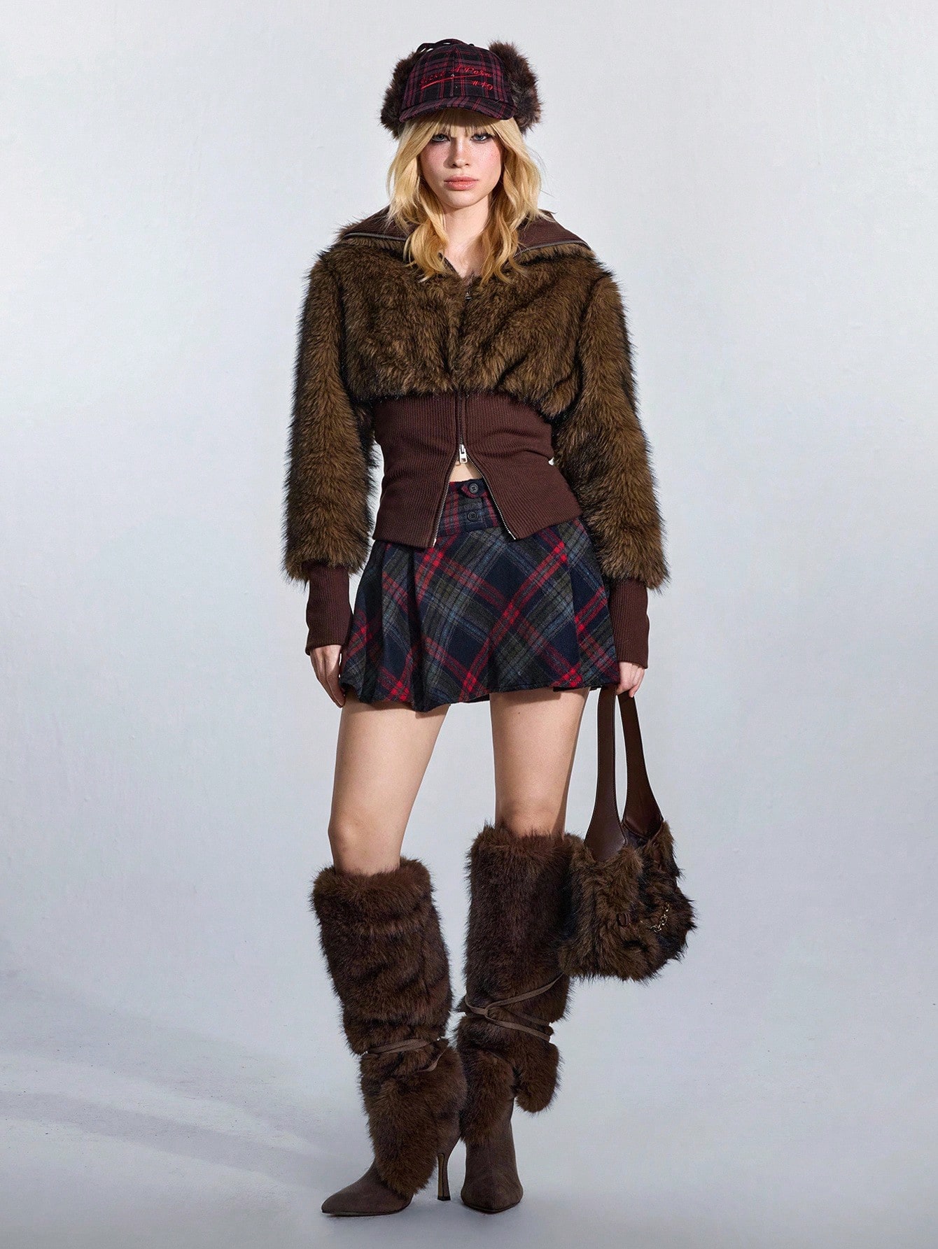 Hippie Women's Fuzzy Zip-Up Collar Long Sleeve Jacket, Fashionable Regular Fit, Autumn/Winter