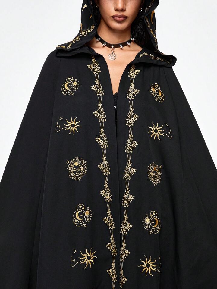 Hippie Women's Halloween Cosplay Embroidered Hooded Cloak Jacket