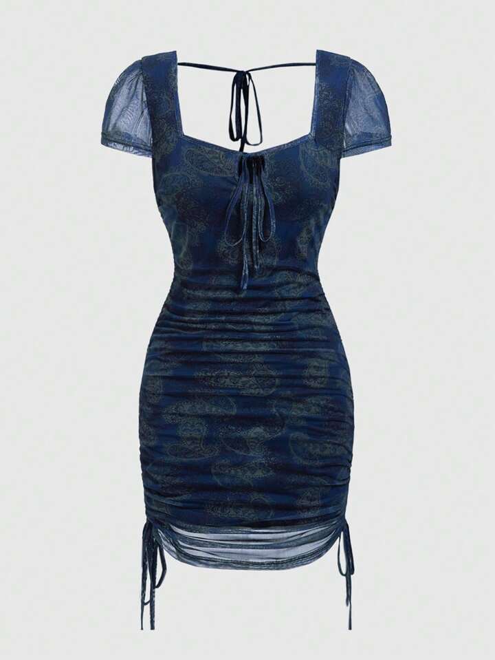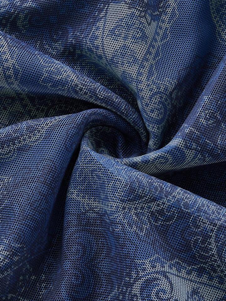 Hippie Women's Paisley Print Patchwork Sheer Mesh Belted Dress