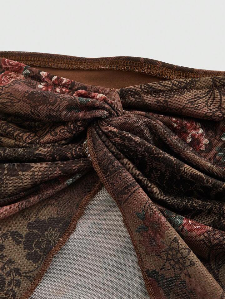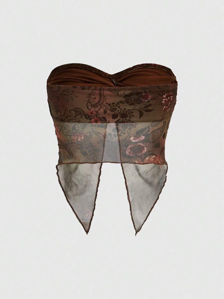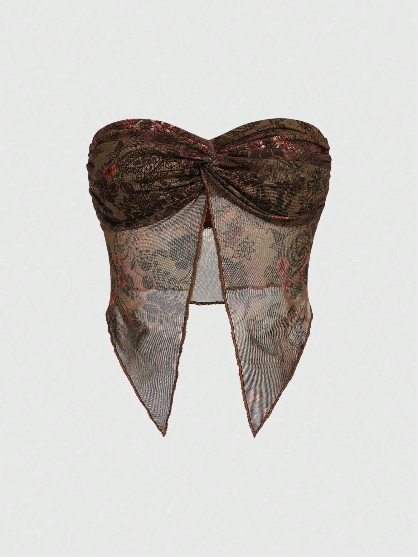 Hippie Women's Planted Printed, Twist Front, Split Hem Tube Top