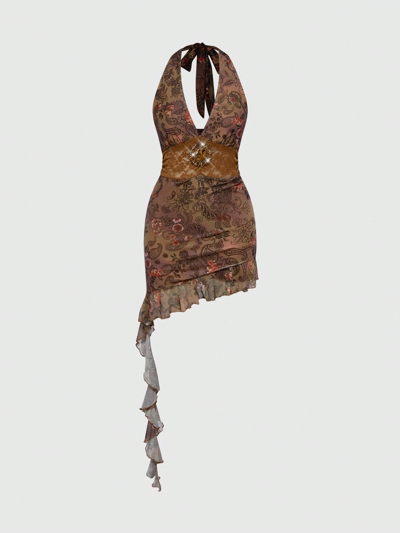 Women's Retro Sexy Hippie Vacation V-Neck Halter Ribbon Decoration Dress