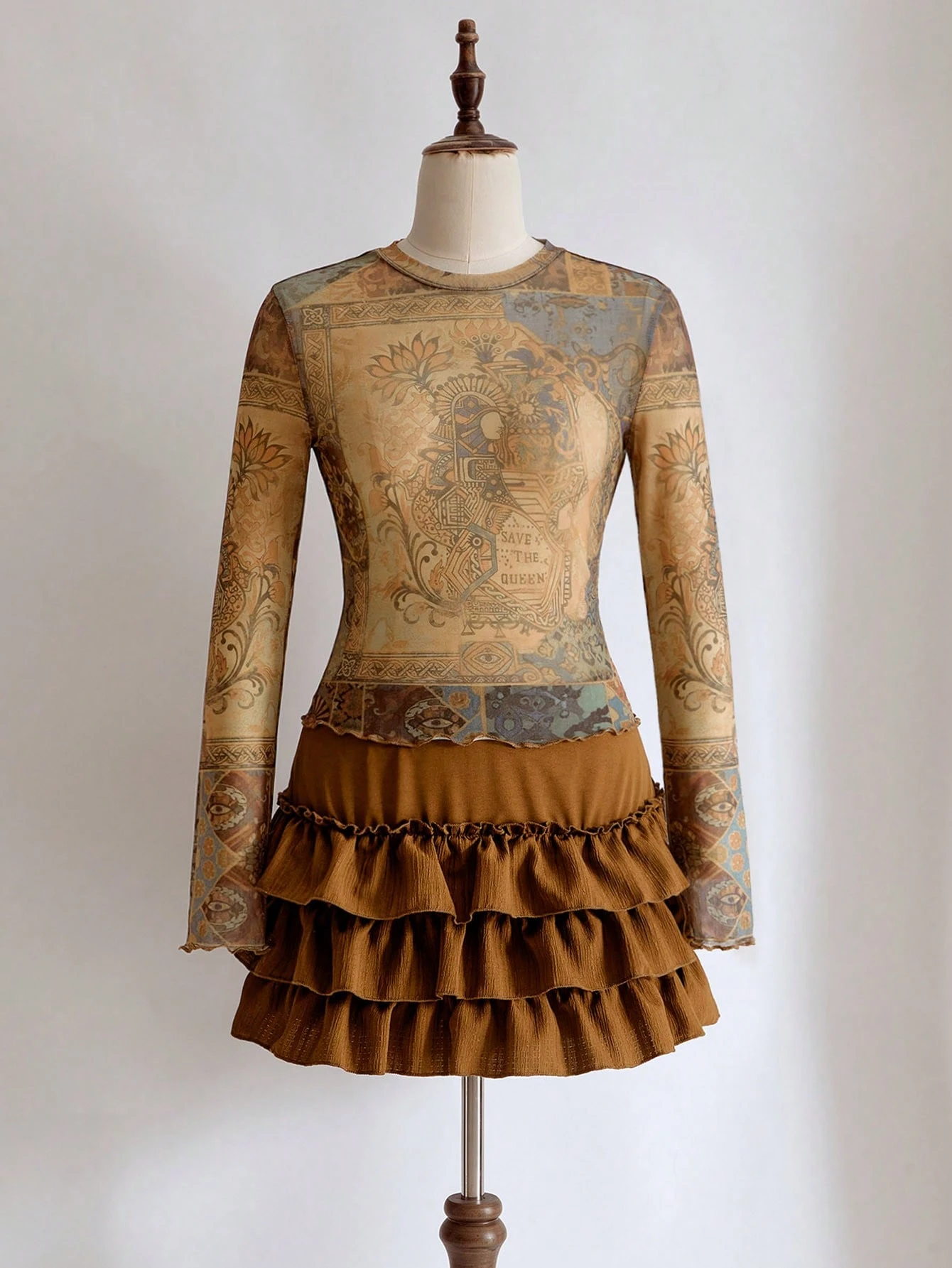 Hippie Women's Sexy Vacation Style Floral Print Long Sleeve Fitted Cropped Sheer Top, Spring/Summer
