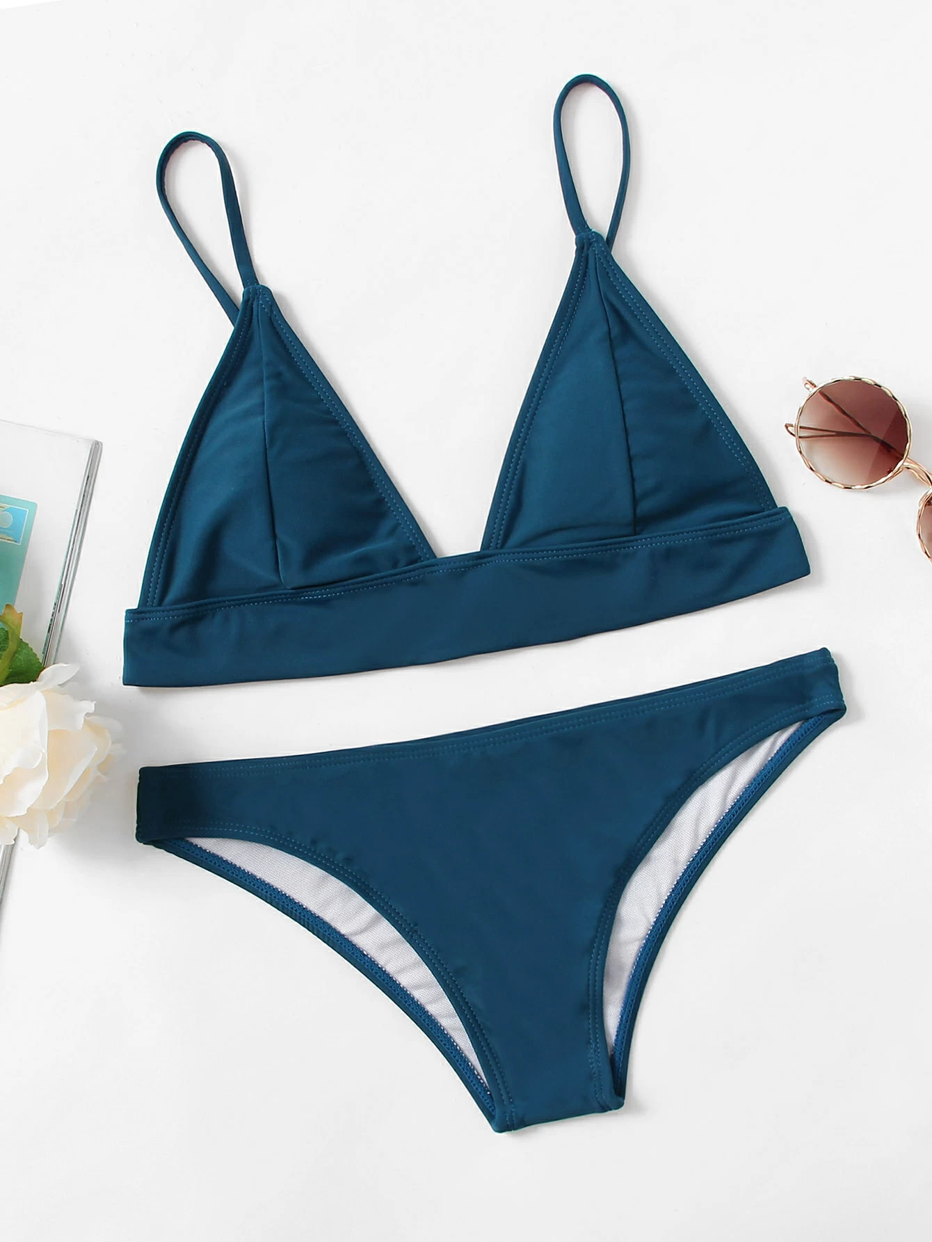 Hook Back Triangle Top With High Leg Bikini Set