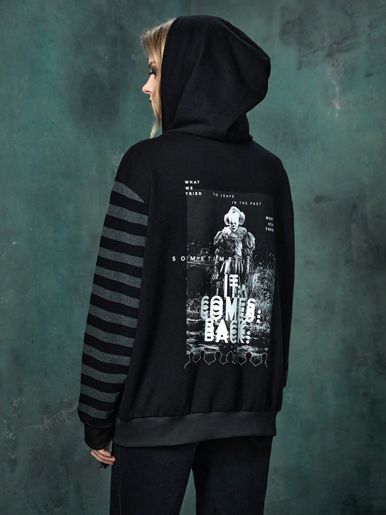 IT Chapter Two | ROMWE Striped & Letter Graphic Zip Up Hoodie