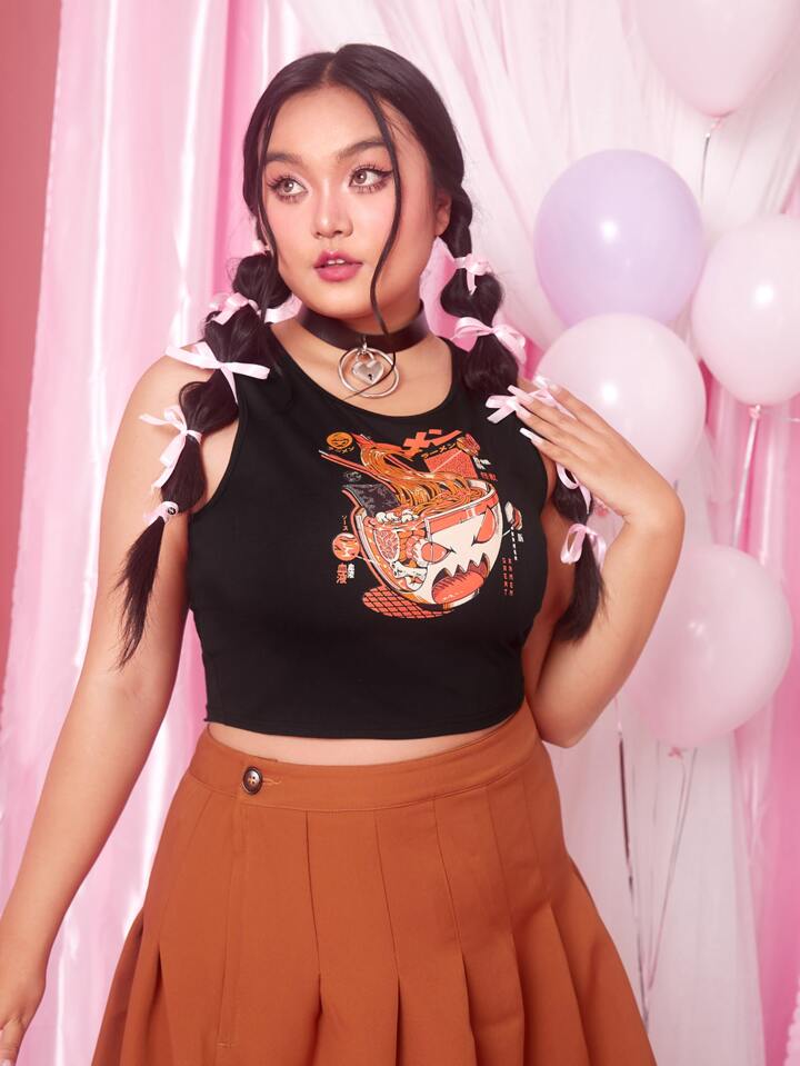Ilustrata Plus Cartoon Graphic Crop Tank Top