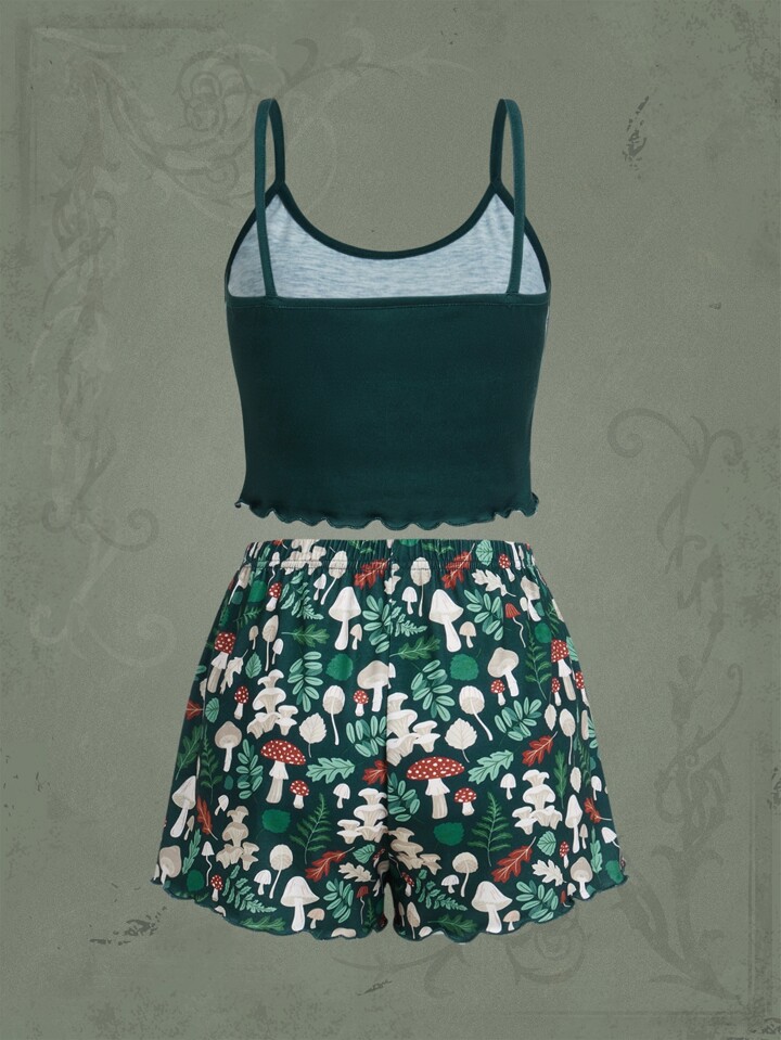 Inna Moreva Fairycore Mushroom Print Lettuce Trim PJ Set