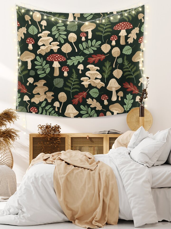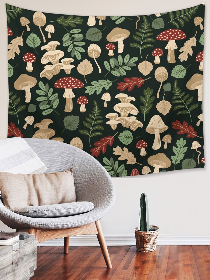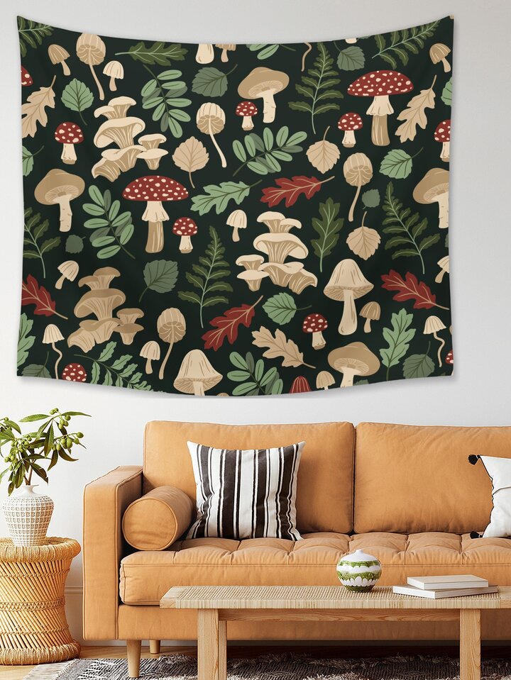 Inna Moreva Leaf & Mushroom Print Tapestry
