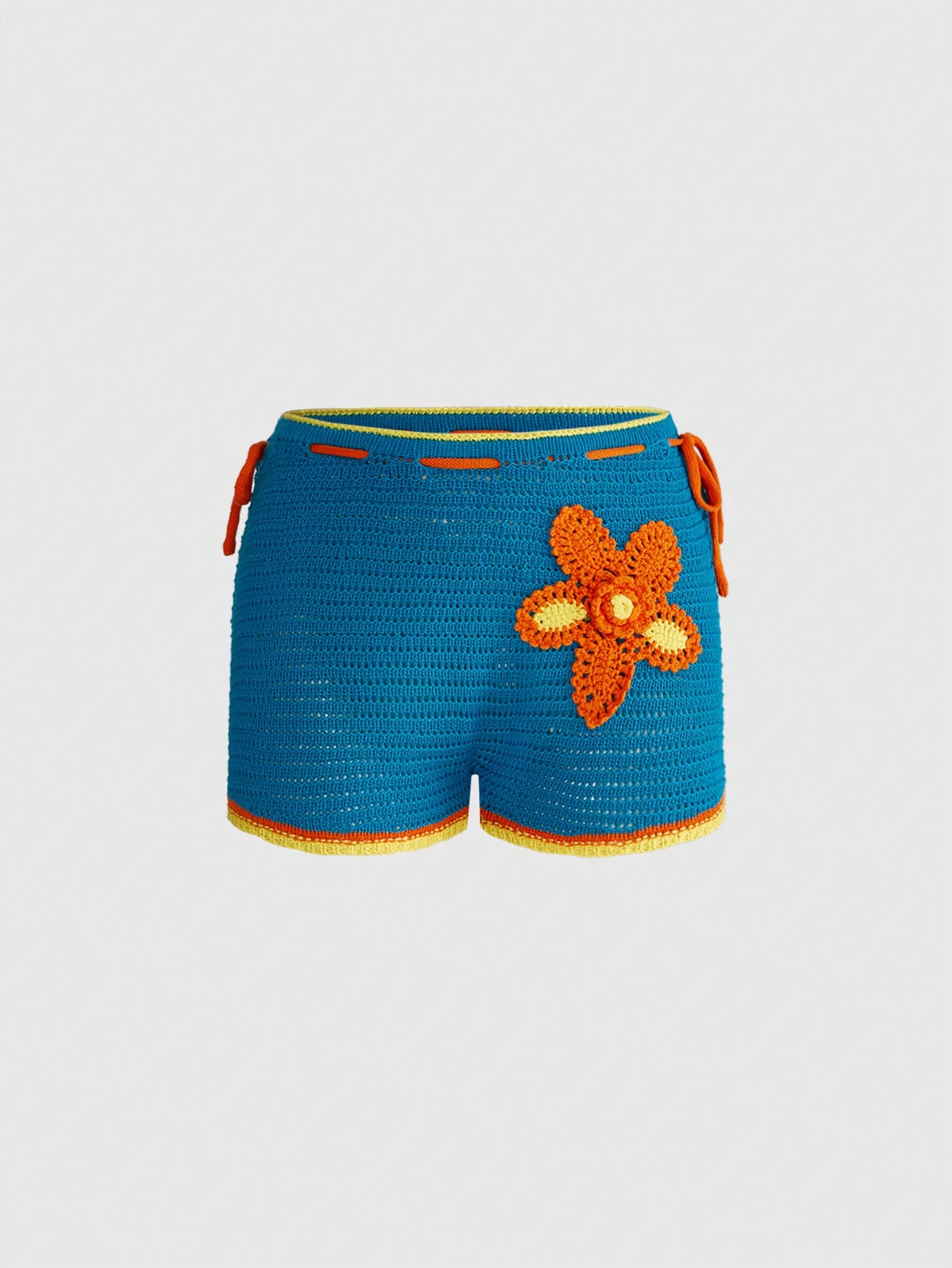 Island Babe Dopamine Colorblock Super Low-Rise Mini Crochet Shorts For Women