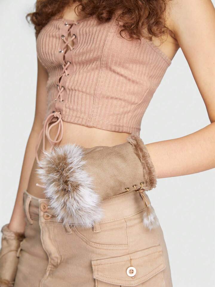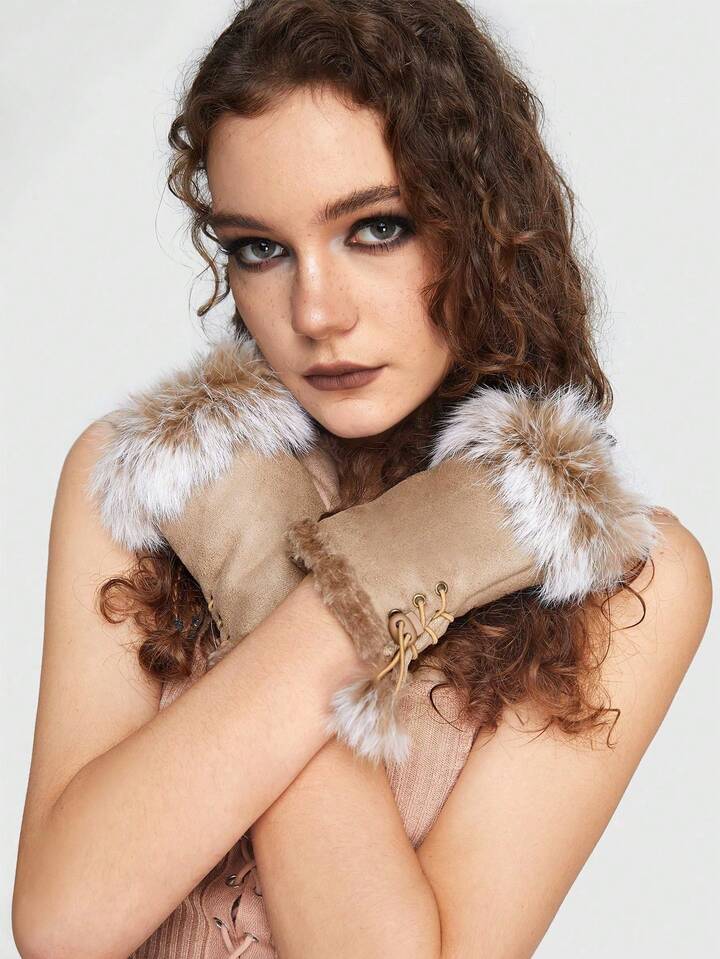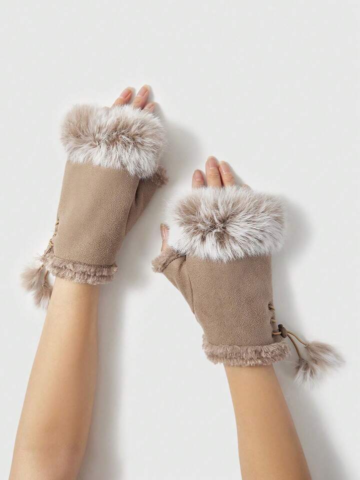 J-Fashion 1 Pair Punk Style Leopard Fluffy Gloves, Y2K Fuzzy Warm Gloves For Winter