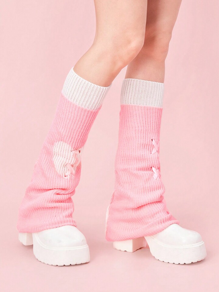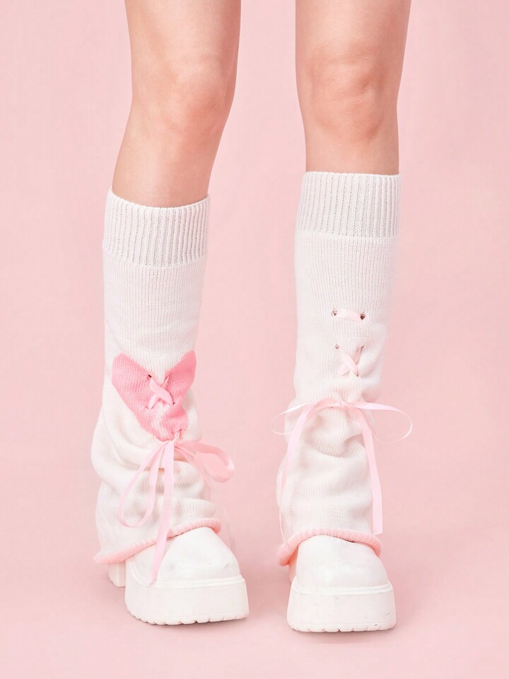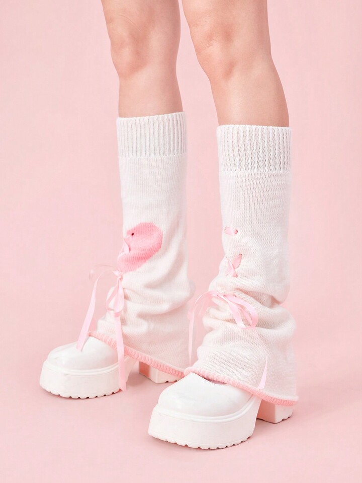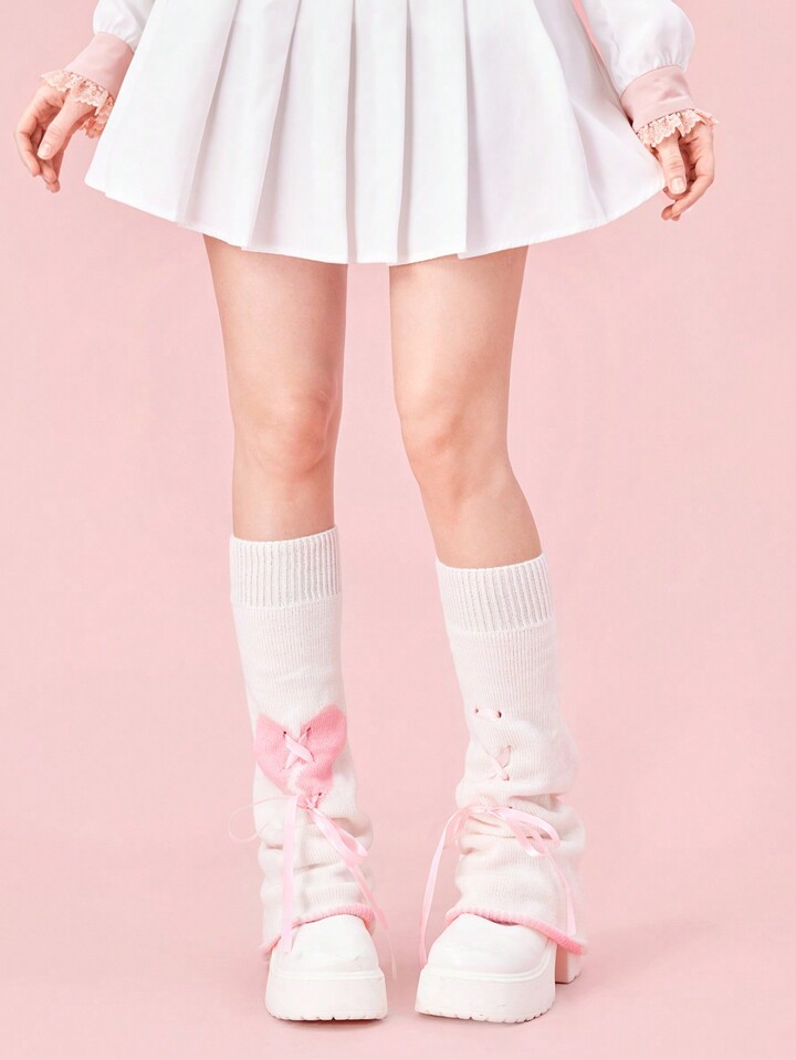 J-Fashion 1 Pair White Heart Decor Cute Leg Warmers