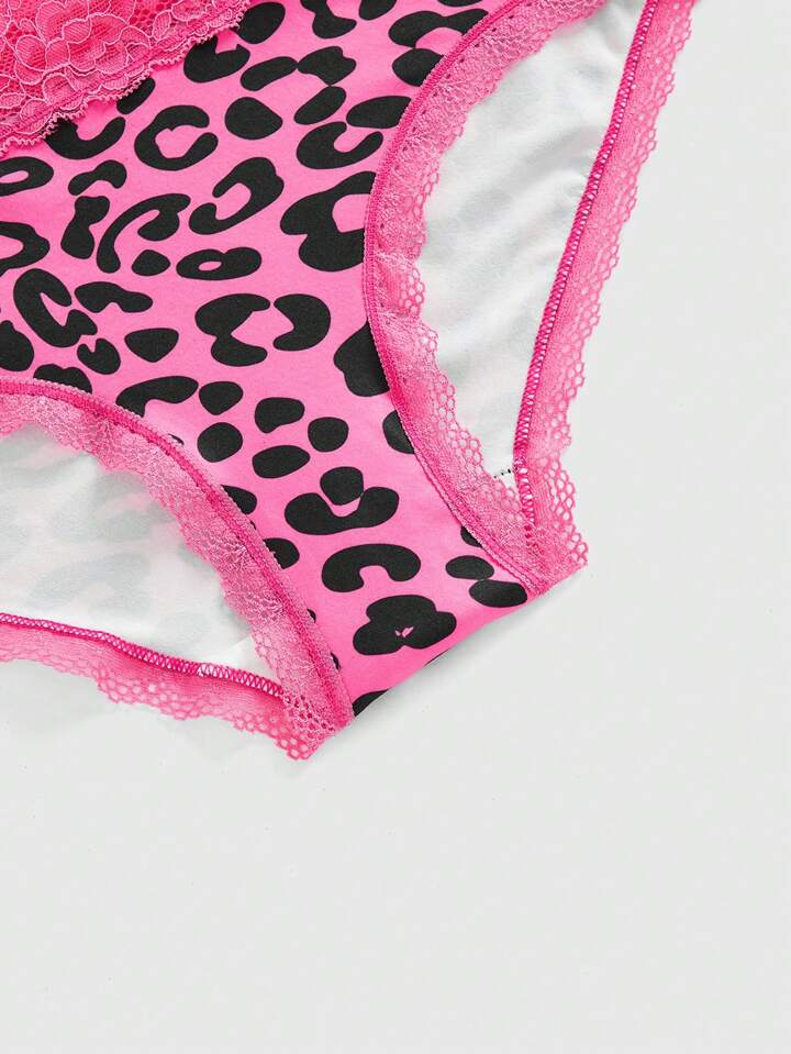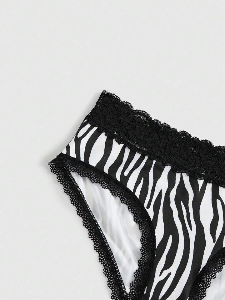 J-Fashion 3pcs Y2K Gyaru Harajuku Leopard Zebra Print & Polka Dot Lace Patchwork Briefs Panties Set